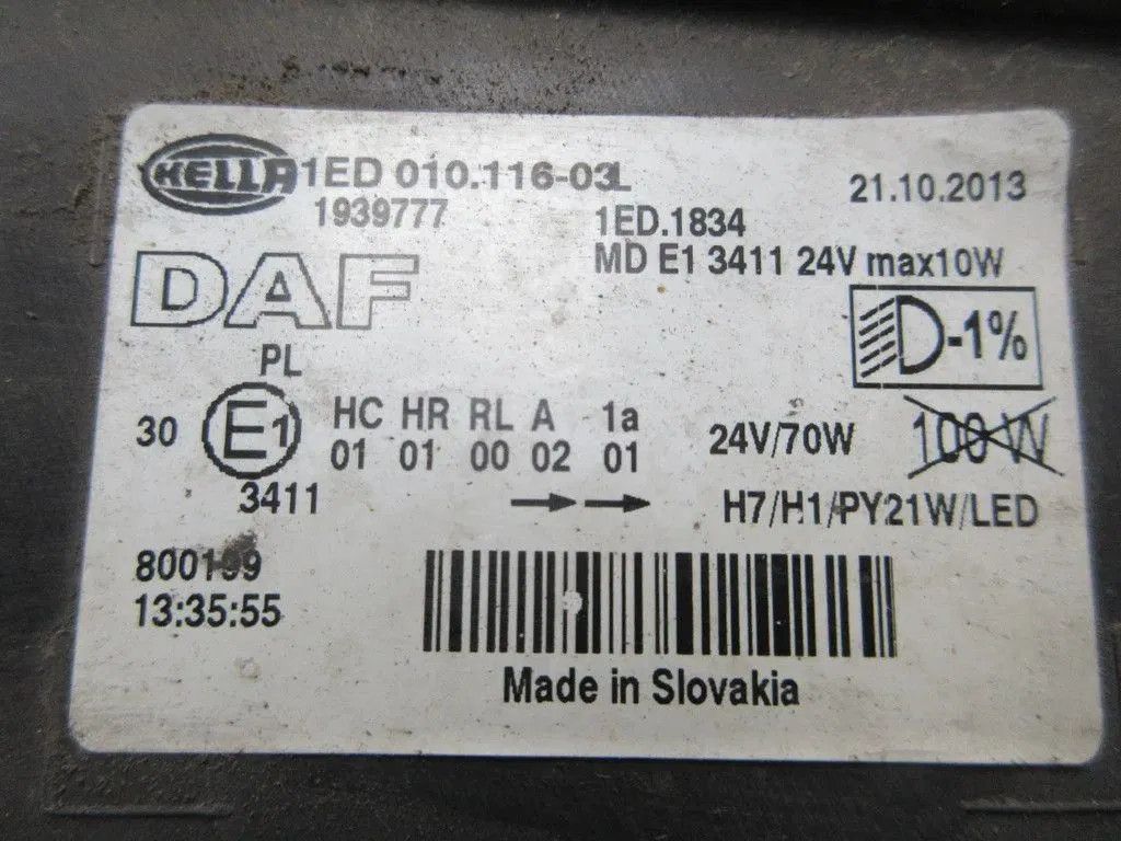 DAF CF XF EURO 6 KOPLAMP PART 1939777 WG 779 885 // 989 // LINKS VAT 3